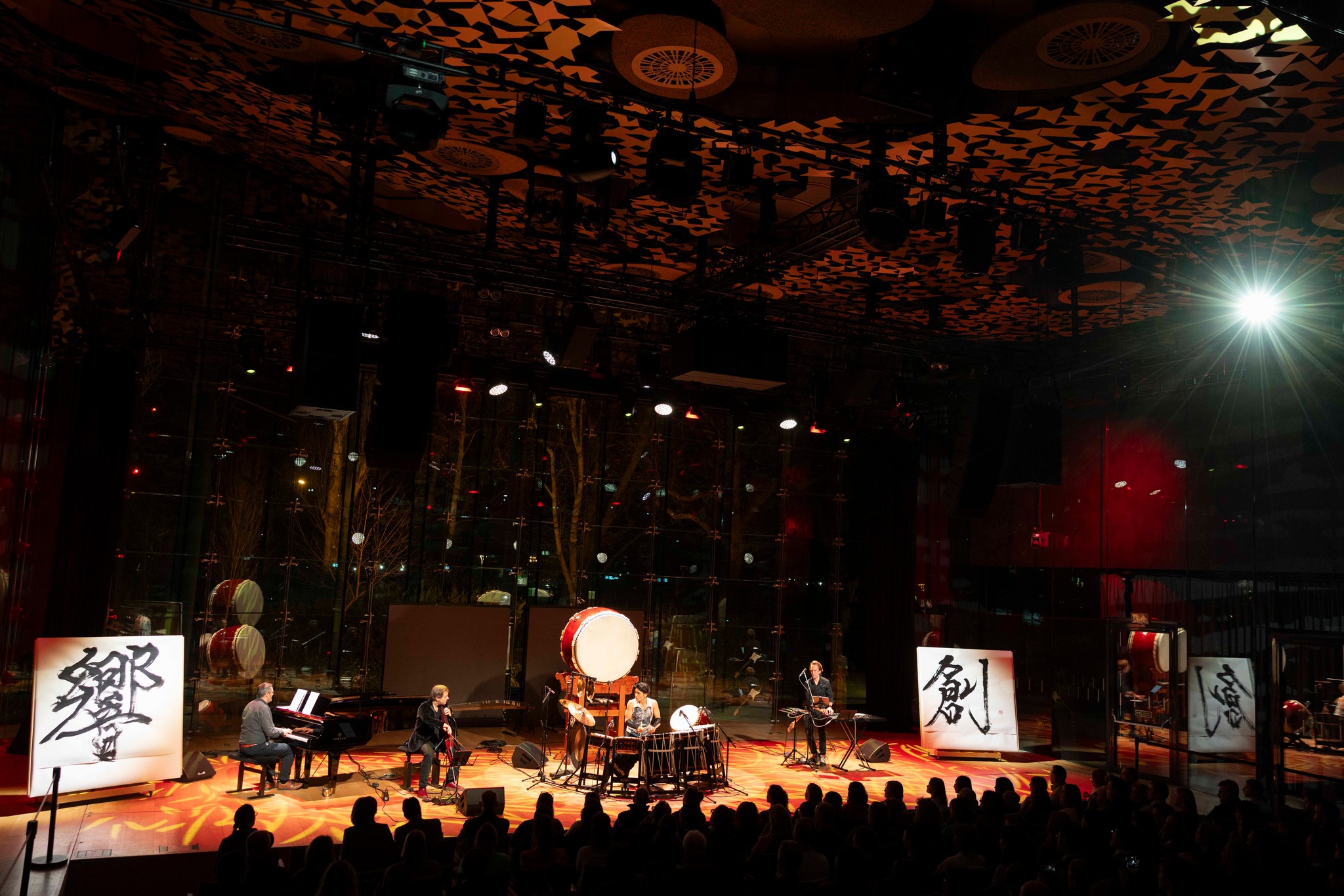 A taiko dobok ereje, az élő kalligráfia és az improvizatív World Jazz Fusion együtt teremtette meg az „együtt rezonálás” élményét.